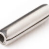 Spirol Spring Pins are roll formed metal strips coiled 2.25x. They are used to align and secure components relative to one another. The resting diameter of the pin is larger the hole diameter into which it is to be inserted. When inserted into the hole the spring action of the pin compresses to fit the smaller diameter hole. As the pin tries to expand to the original diameter the force against the hole’s wall tightens the fit. This creates the holding power against shock and vibration. The ends are chamfered to make insertion of the pin easier.