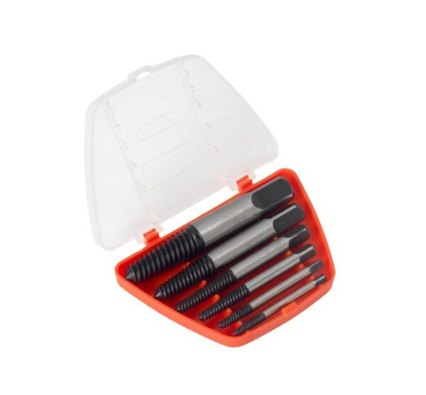 6-Piece Screw Extractor Set comprising of extractor sizes Nos. 1, 2, 3, 4, 5 and 6, with ranges between 3-22 mm.